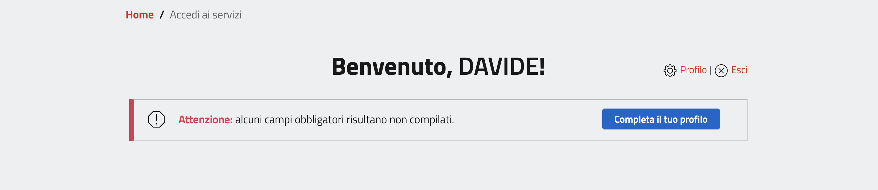 L'avviso è del tutto normale e richiama semplicemente la vostra attenzione affinché venga firmata l'informativa Privacy. Pertanto cliccare su Completa il tuo Profilo.