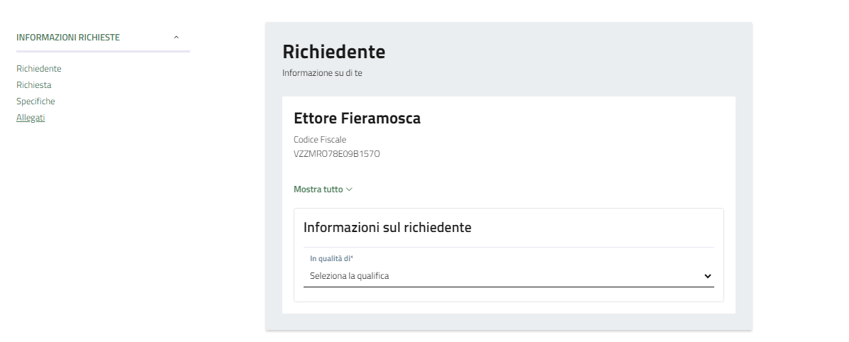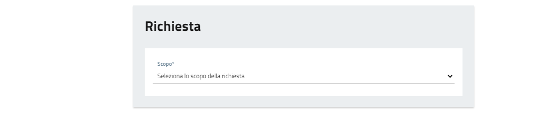 Dal menù a tendina selezionare lo scopo della richiesta.
