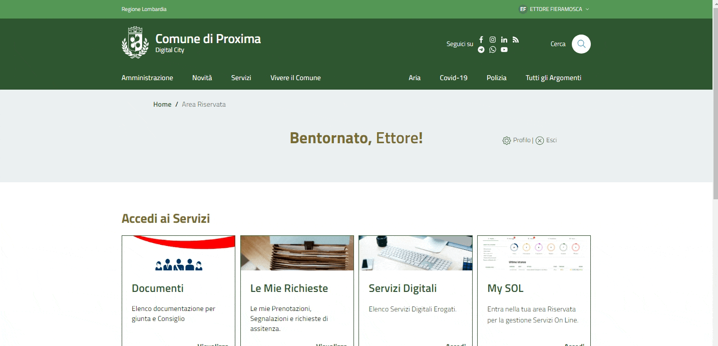 Nel caso in cui siate Amministratori, Consiglieri o Membri di una commissione, troverete la sezione Documenti, dove l'ente può depositare digitalmente la documentazione necessaria per lo svolgimento di Giunte Comunali, Consigli Comunali o Commissioni.
