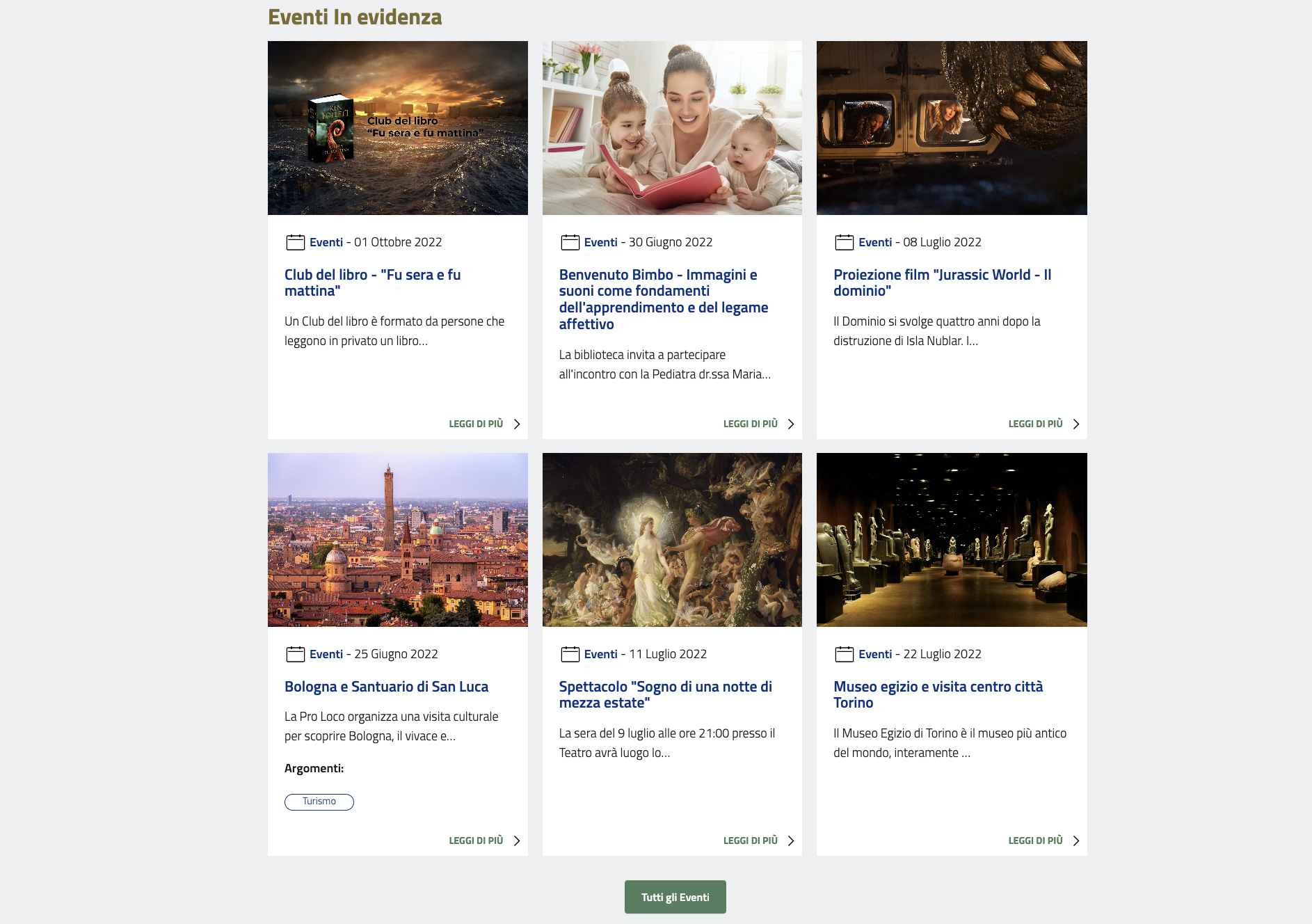 E' comunque sempre possibile accedere a tutto lo storico degli eventi pubblicati cliccando sul tasto "Tutti gli eventi".