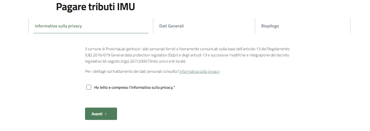 Il primo passo per calcolare l'IMU dovuta, è l'accettazione dell'informativa privacy.