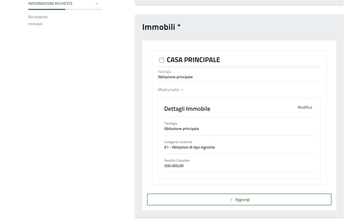 Il box Immobili, nel caso abbiate completato l'anagrafica nelle Impostazioni, sarà già popolato.