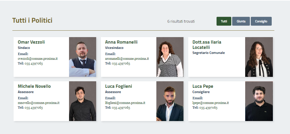 E' possibile filtrare i risultati sulla base dell'organo di governo di appartenenza, ovvero Giunta o Consiglio.