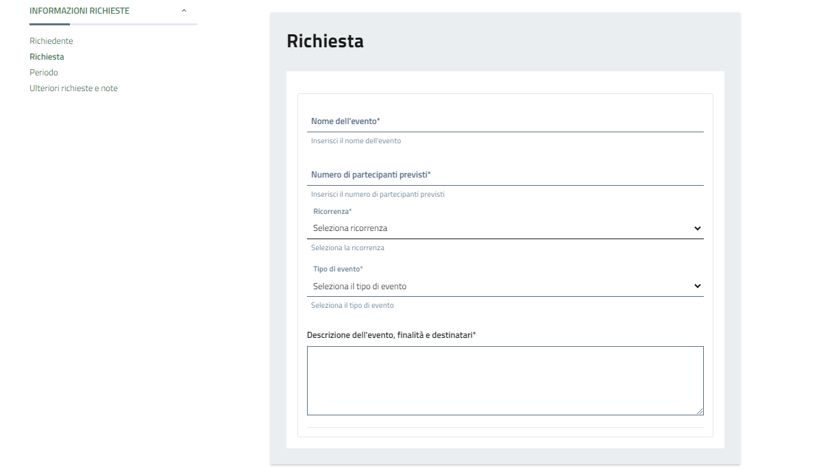 Indicare tutti i dettagli richiesti