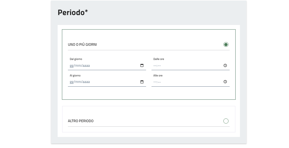 Precisare se il periodo per il quale si chiede il patrocinio è misurato in giorni o per un periodo più lungo. Nel primo caso indicare il lasso di tempo nei campi dedicati.
